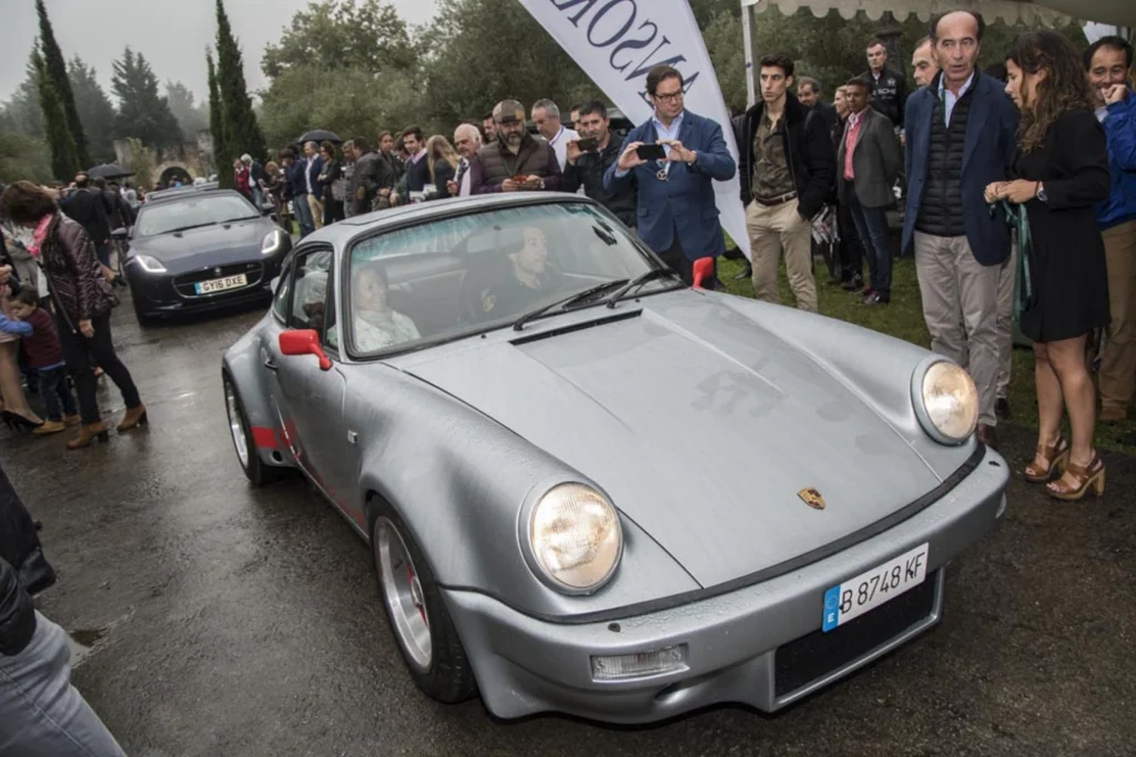 Bajo una fina lluvia fueron llegando todos los vehículos para exponer y desfilar, joyas de gran valor entre las que se encontraba un Jaguar E-Type, varios Porsche de casi todas las generaciones, un Ferrari Testarrosa y un espectacular Lamborghini Countach.