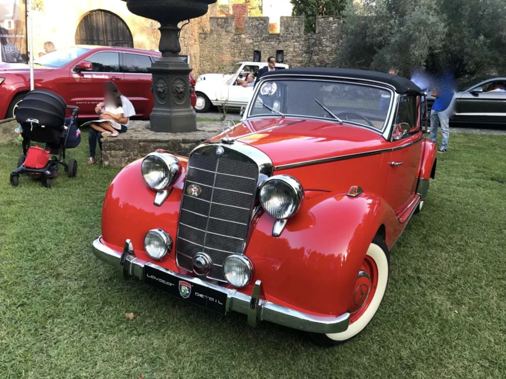 El elegante Mercedes 170 S traído para la ocasión por Lavacar recibió otro de los Portagos.