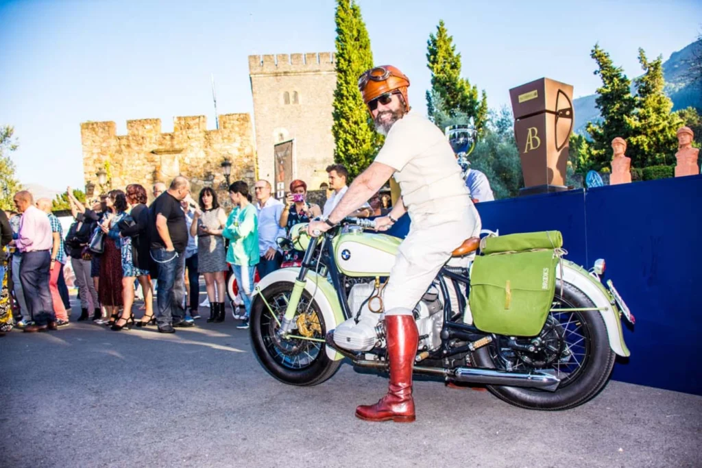 En la categoría de motos, Iñigo Olaizola, presidente del Automóvil Clásico de Euskadi, desfiló con su BMW personalizada, además de ir ataviado con un mono y botas clásicas. Su montura se llevó el correspondiente Portago para las dos ruedas.