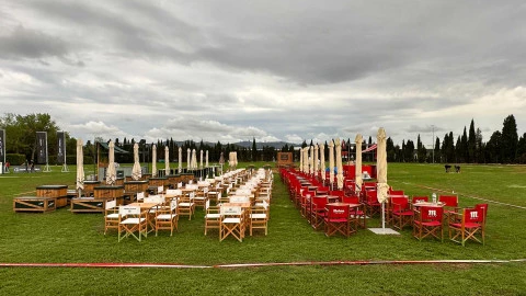 La zona de restauración se situó en una posición central de la cancha bajo la protección de numerosas sombrillas, un área perfecta para combatir el calor en buena compañía. Fue especialmente concurrida la amplia terraza de Mahou, San Miguel y Alhambra, así como los puntos de Academia del Gusto, Viña Pedrosa, Love Spirits, Vermouth Perucchi, vinos Ramón Canals, Conservas Frinsa, Tabacos Moods y Paella Galbis. Además, Singular Memories informó sobre sus viajes de lujo, Bambag expuso sus bolsos y ópticas Cottet obsequió a los asistentes con productos, junto con Chanel.
